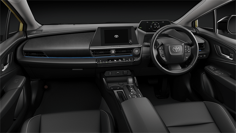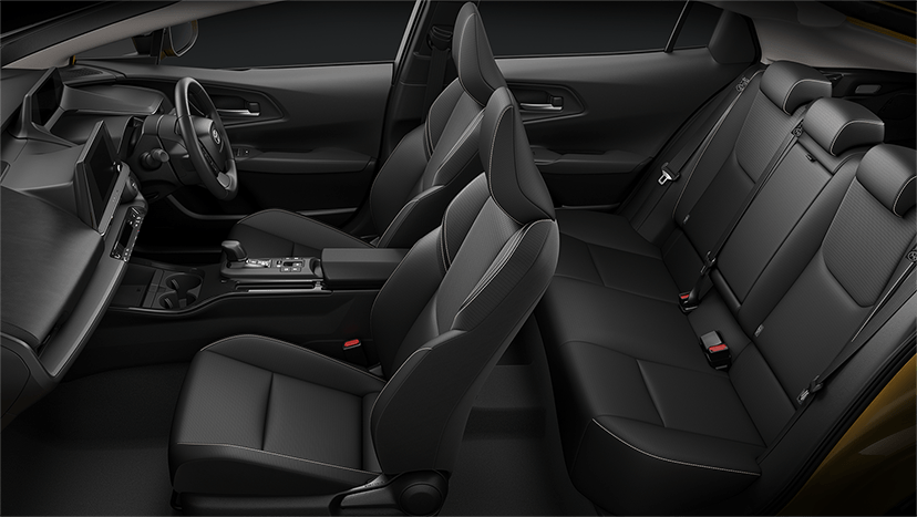 ภายในห้องโดยสารของ Prius G Night Shade ถูกตกแต่งด้วยโทนสีดำทั้งคัน เริ่มตั้งแต่แผงแดชบอร์ดสีดำเข้ม ไปจนถึงเบาะนั่งหุ้มด้วยผ้า High-Grade Fabric สีดำที่เพิ่มความดุดัน พร้อมลวดลายสปอร์ตพิเศษ เบาะคนขับสามารถปรับด้วยมือได้ 6 ทิศทาง ส่วนเบาะผู้โดยสารด้านหน้าปรับด้วยมือได้ 4 ทิศทาง